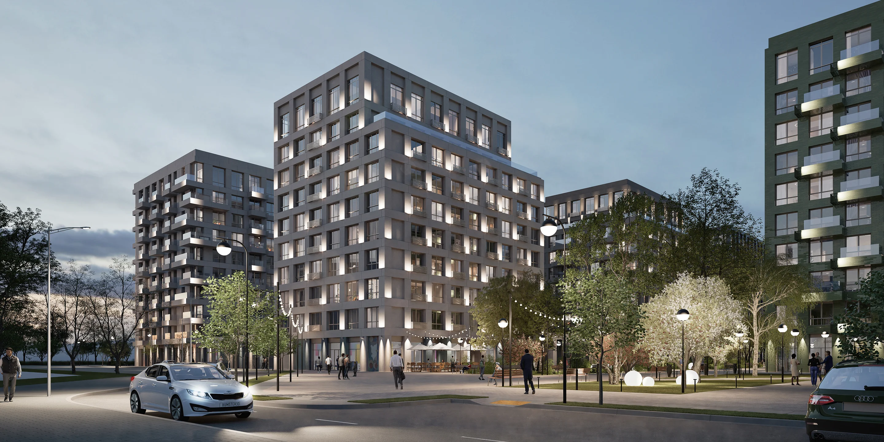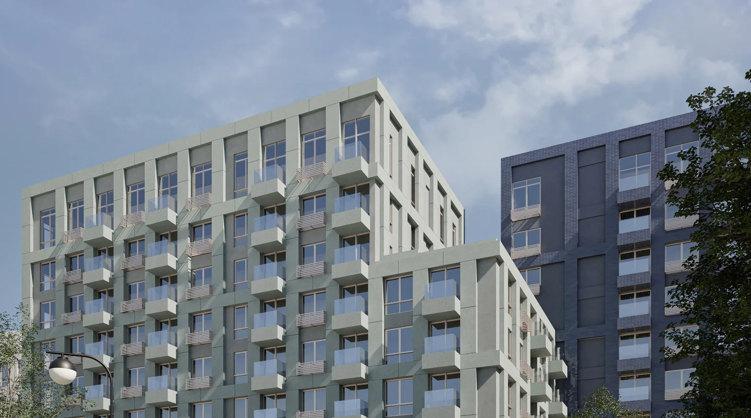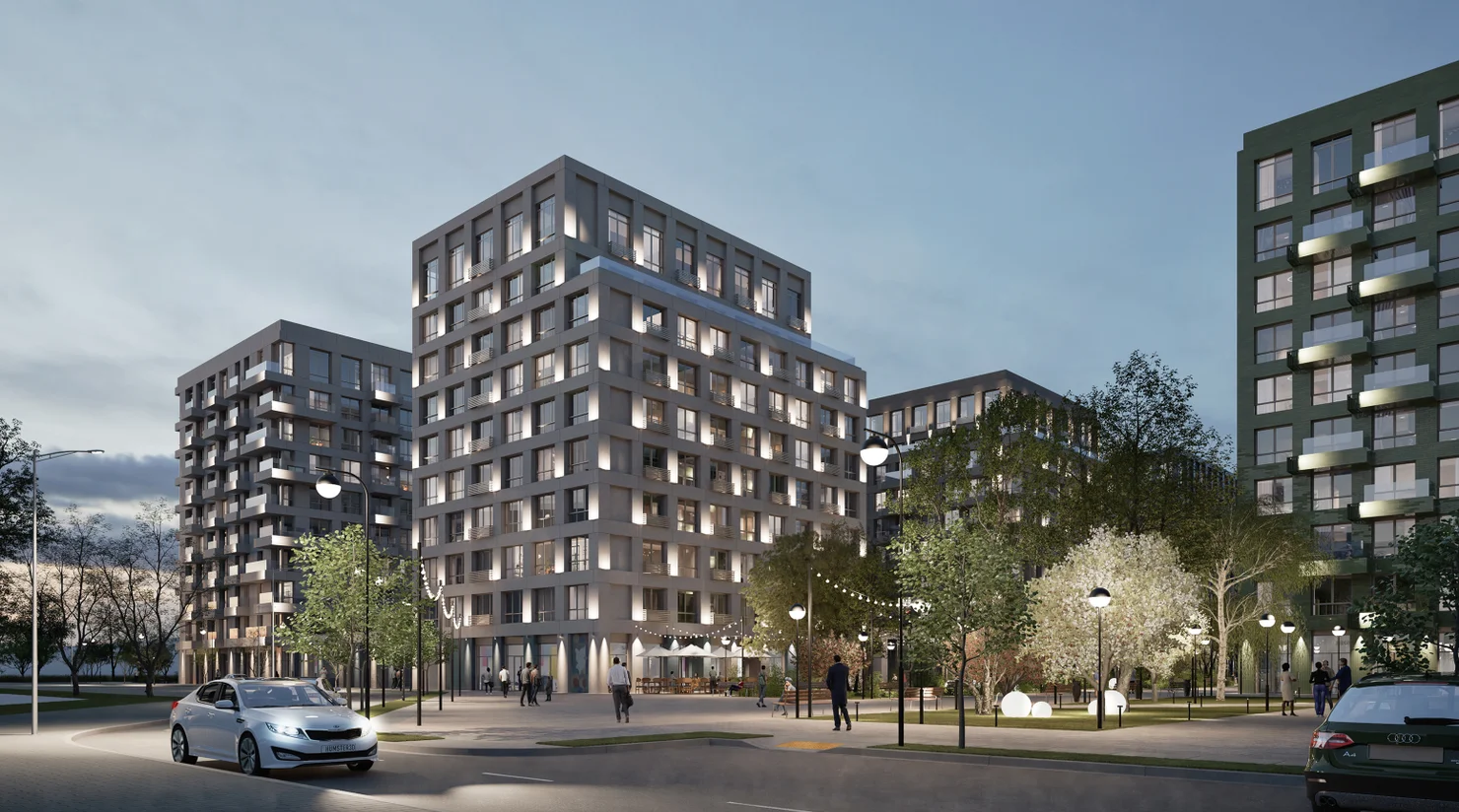Просторные квартиры на верхних этажах. Гостевое пространство на первом уровне, приватное — на втором. Из больших окон открываются завораживающие виды на город.