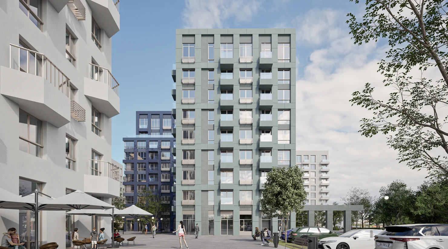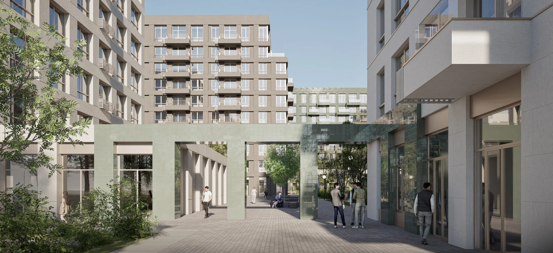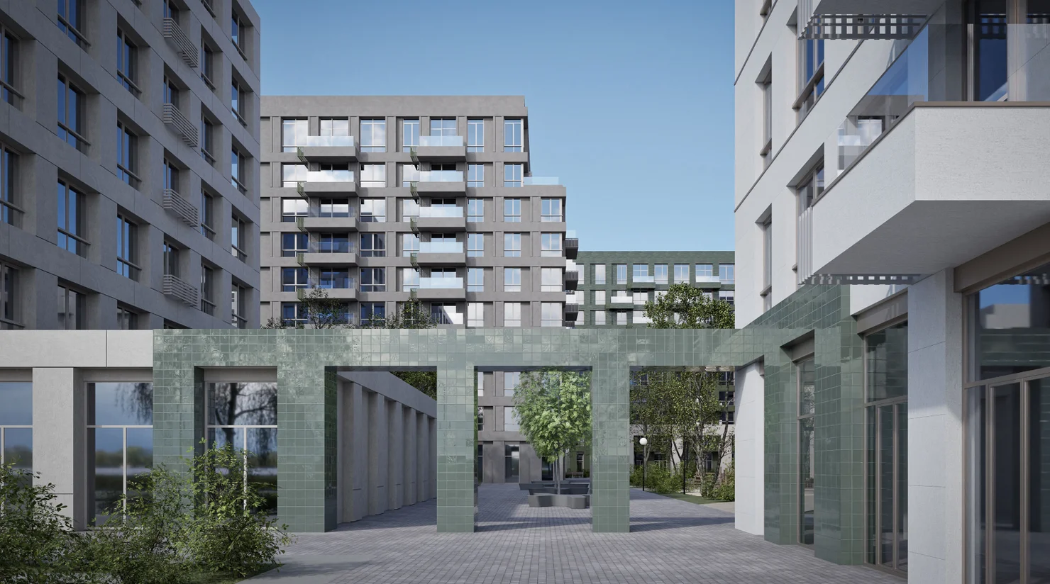 Просторные квартиры на верхних этажах. Гостевое пространство на первом уровне, приватное — на втором. Из больших окон открываются завораживающие виды на город.
