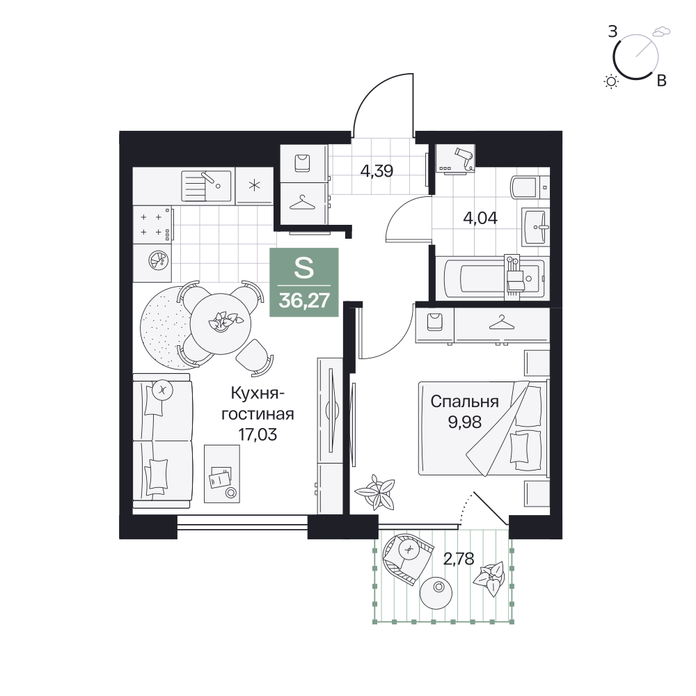 Студия  33.32 м2
