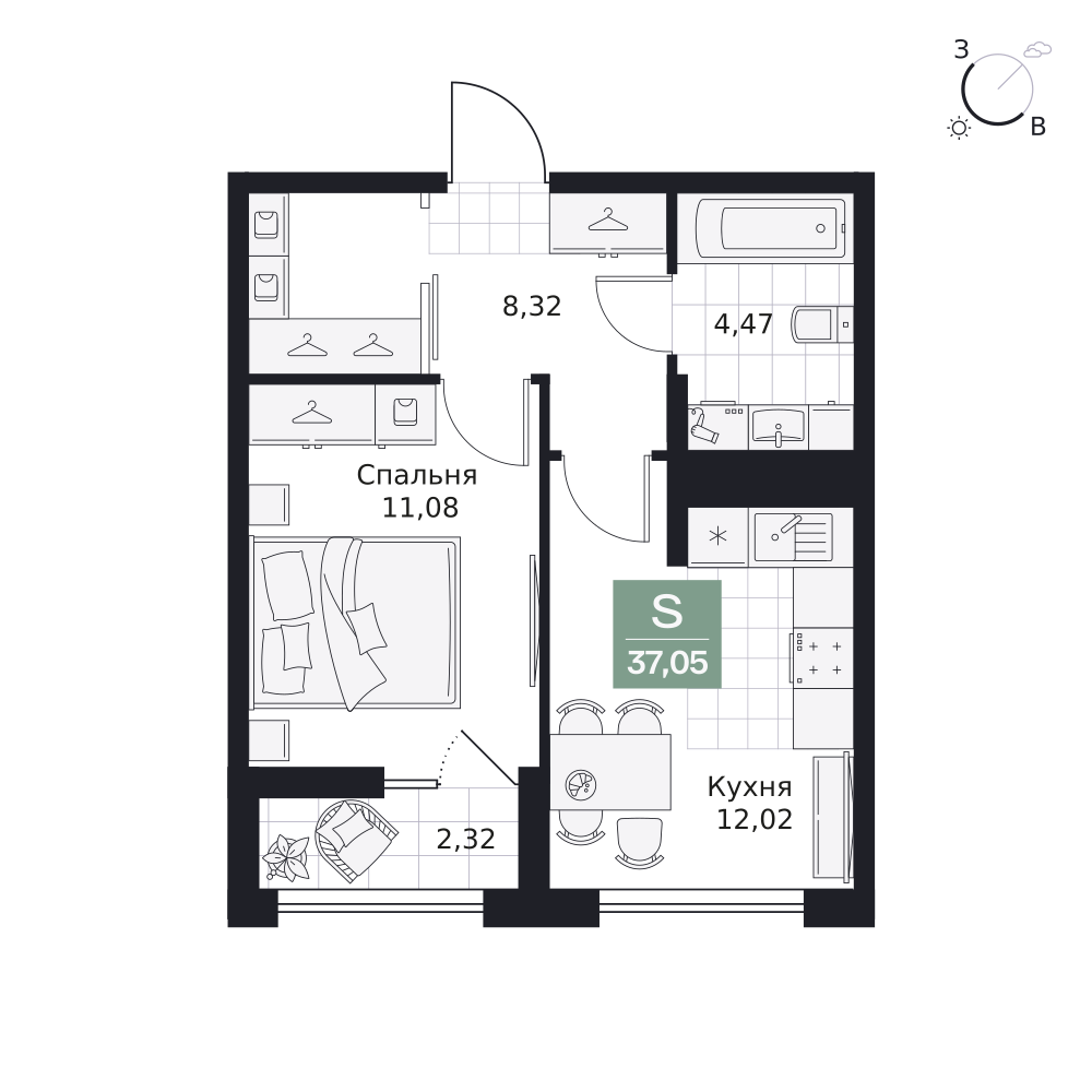 1-комнатная  35.17 м2