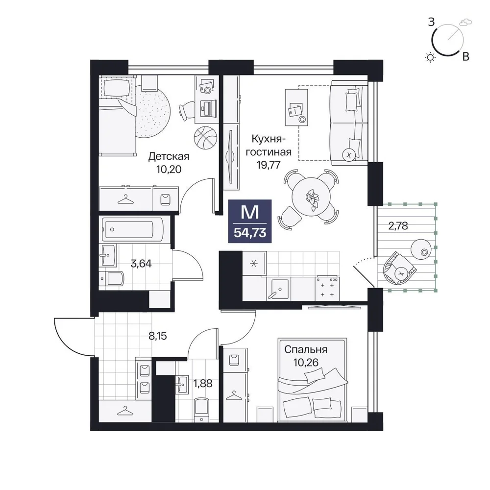 2-комнатная  60.59 м2