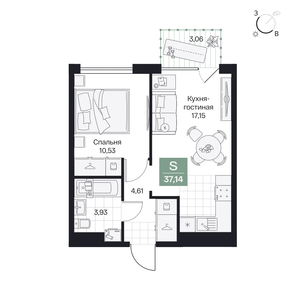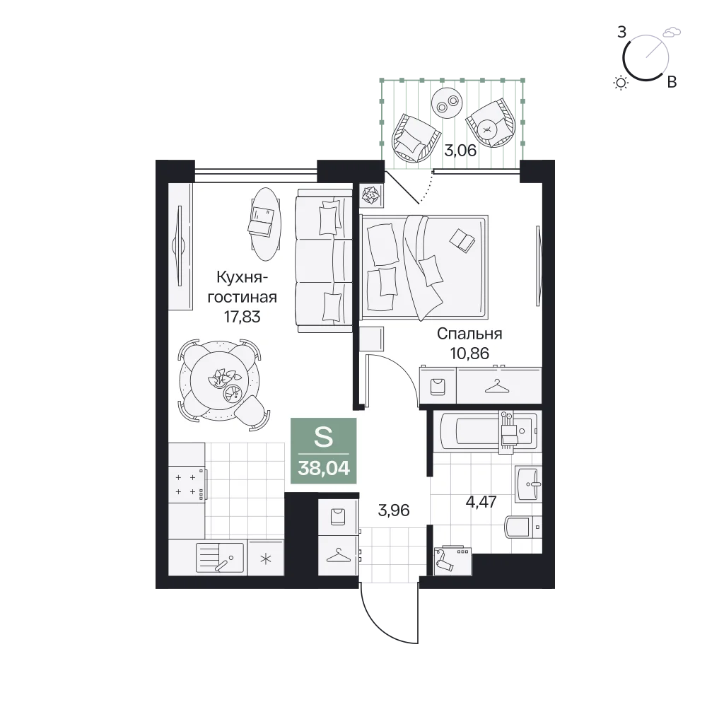 1-комнатная 38.54 м2