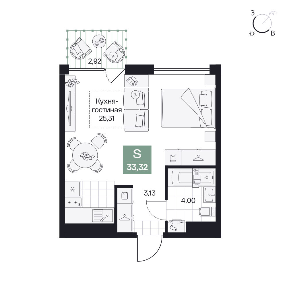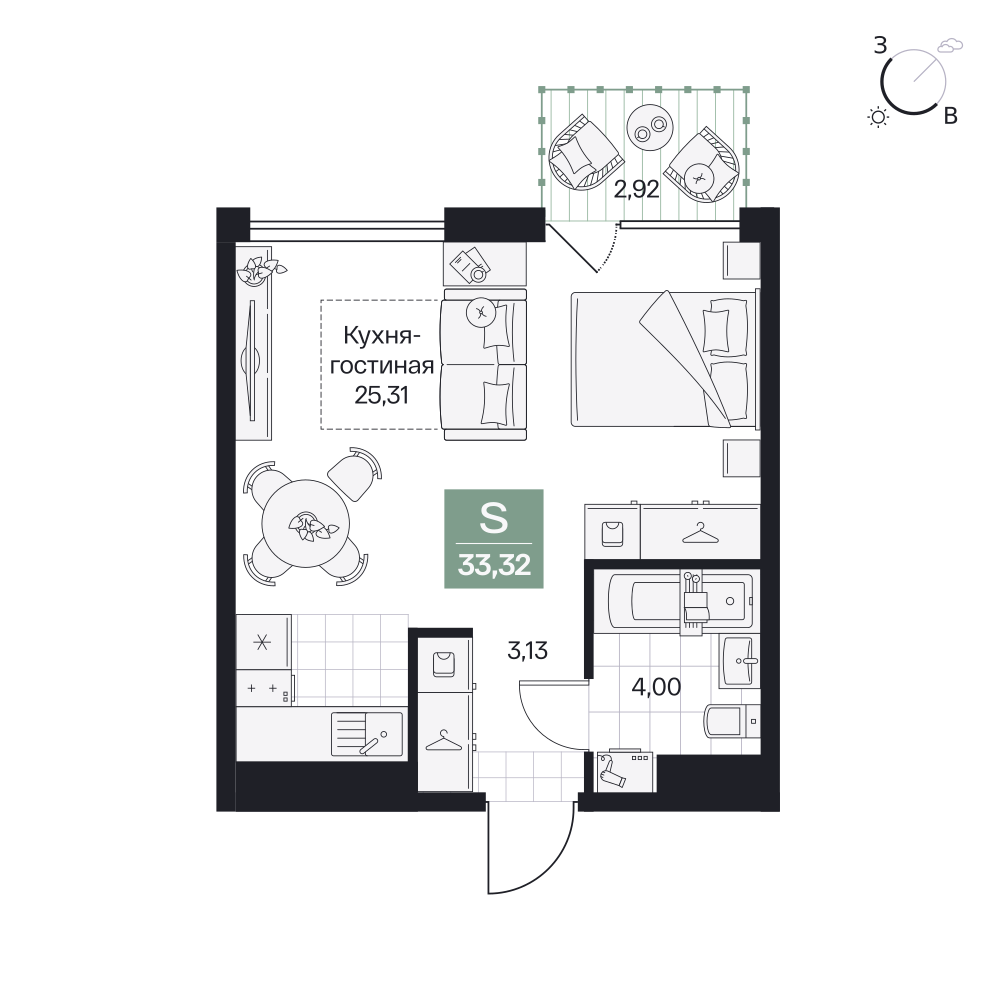 1-комнатная  37.29 м2