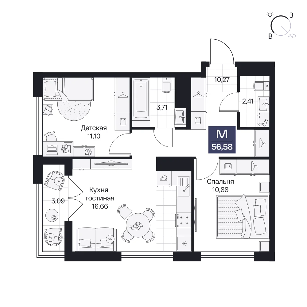 2-комнатная  62.93 м2