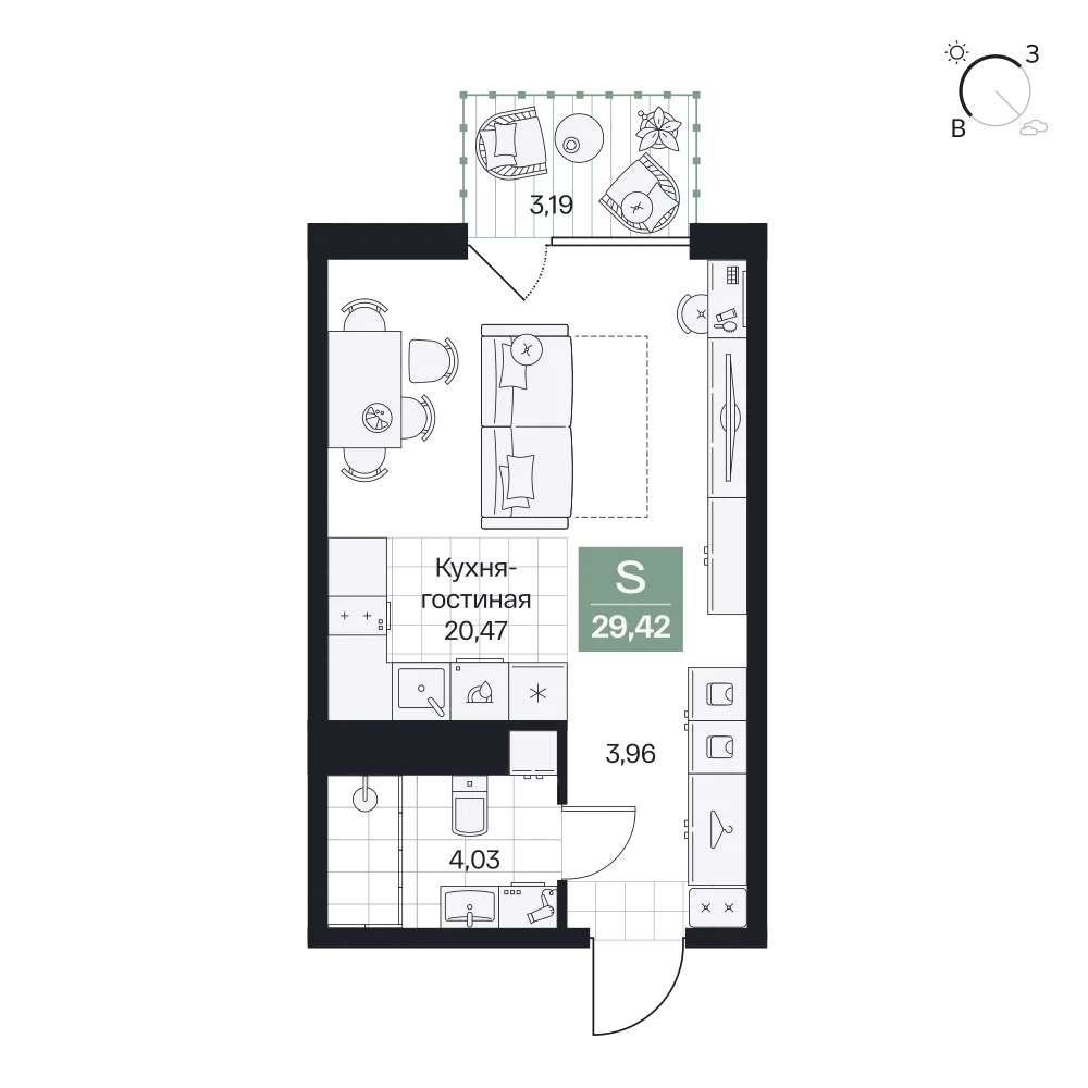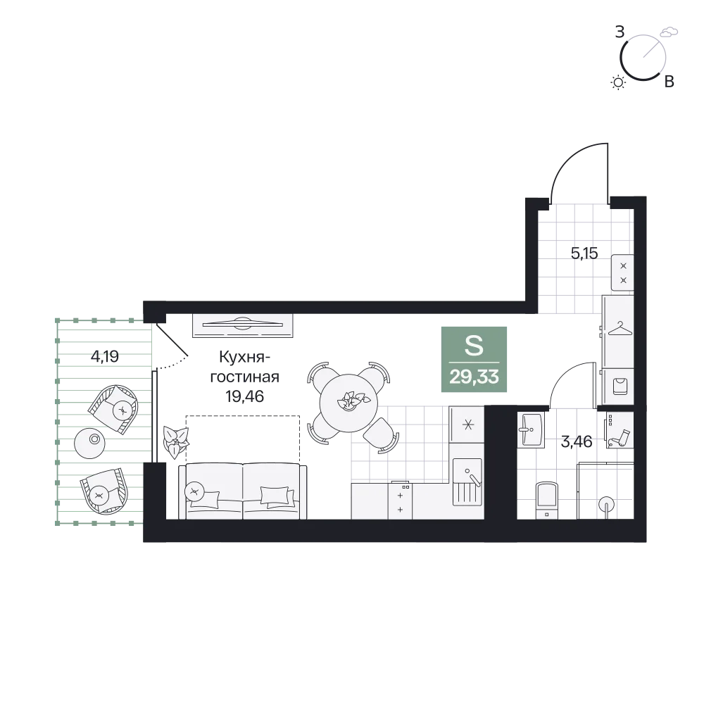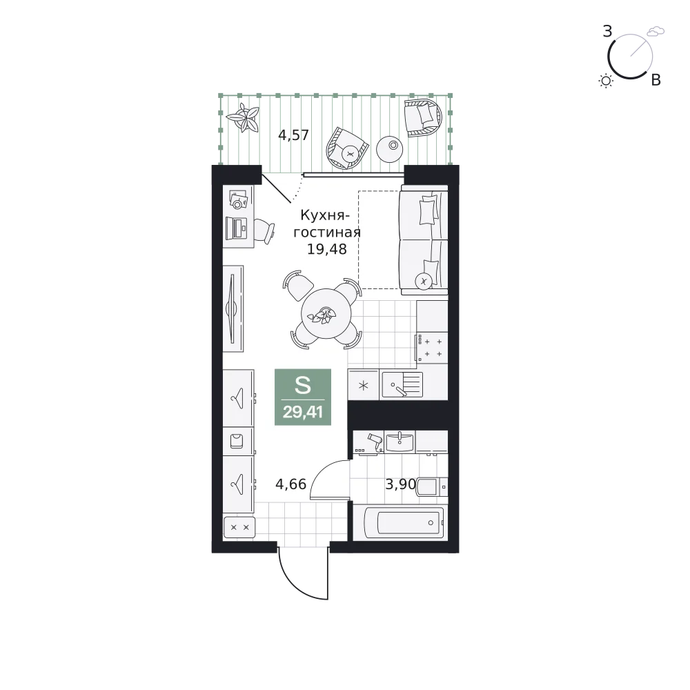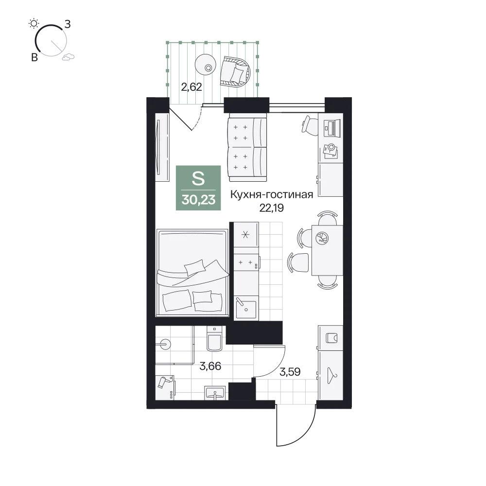 Студия  30.09 м2