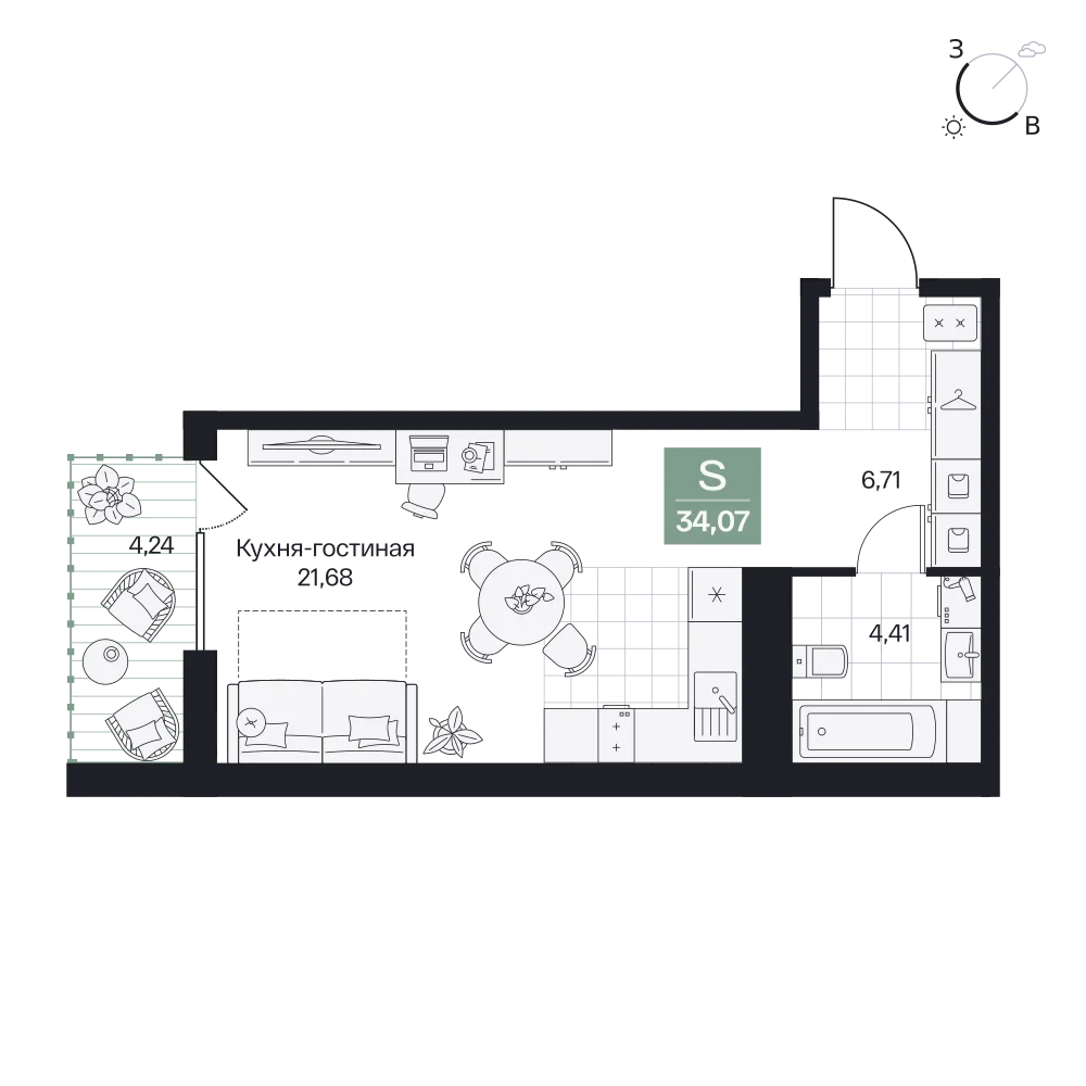 1-комнатная 35.71 м2