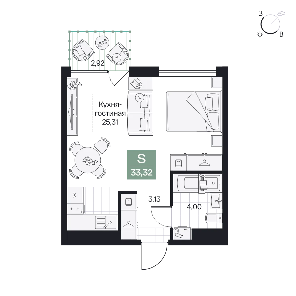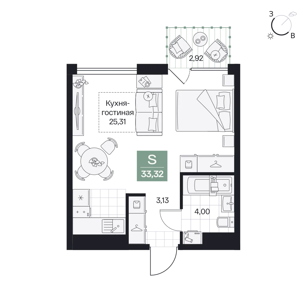 1-комнатная  35.71 м2