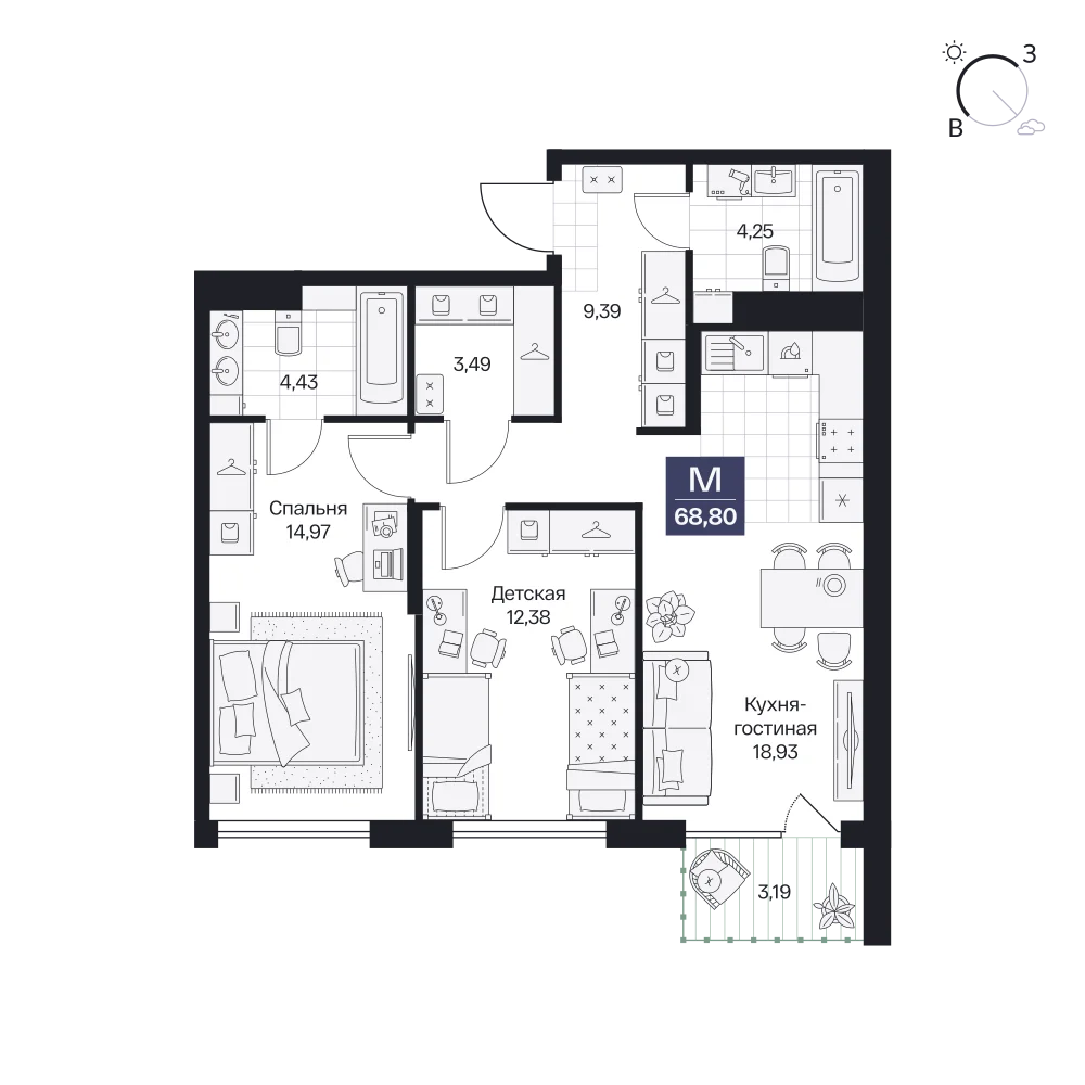 3-комнатная  72.06 м2