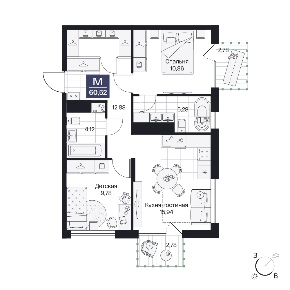2-комнатная  64.77 м2