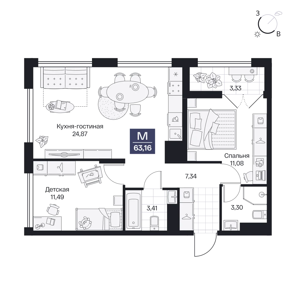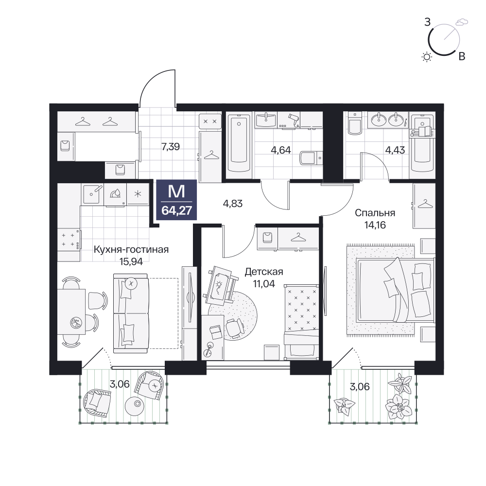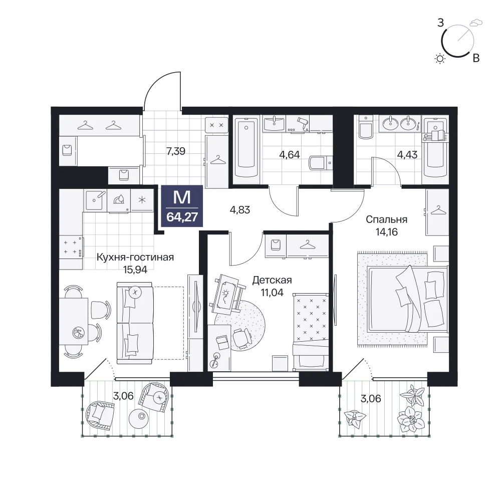 2-комнатная  62.93 м2