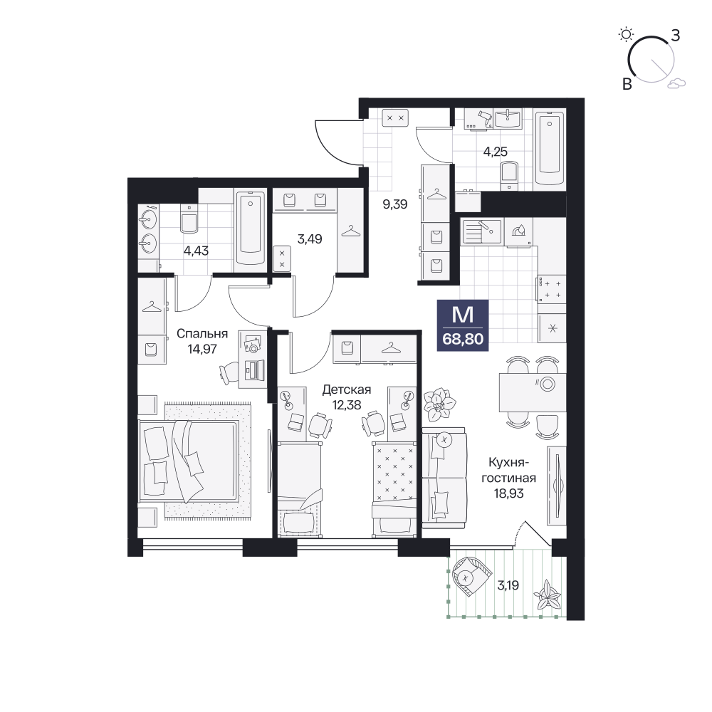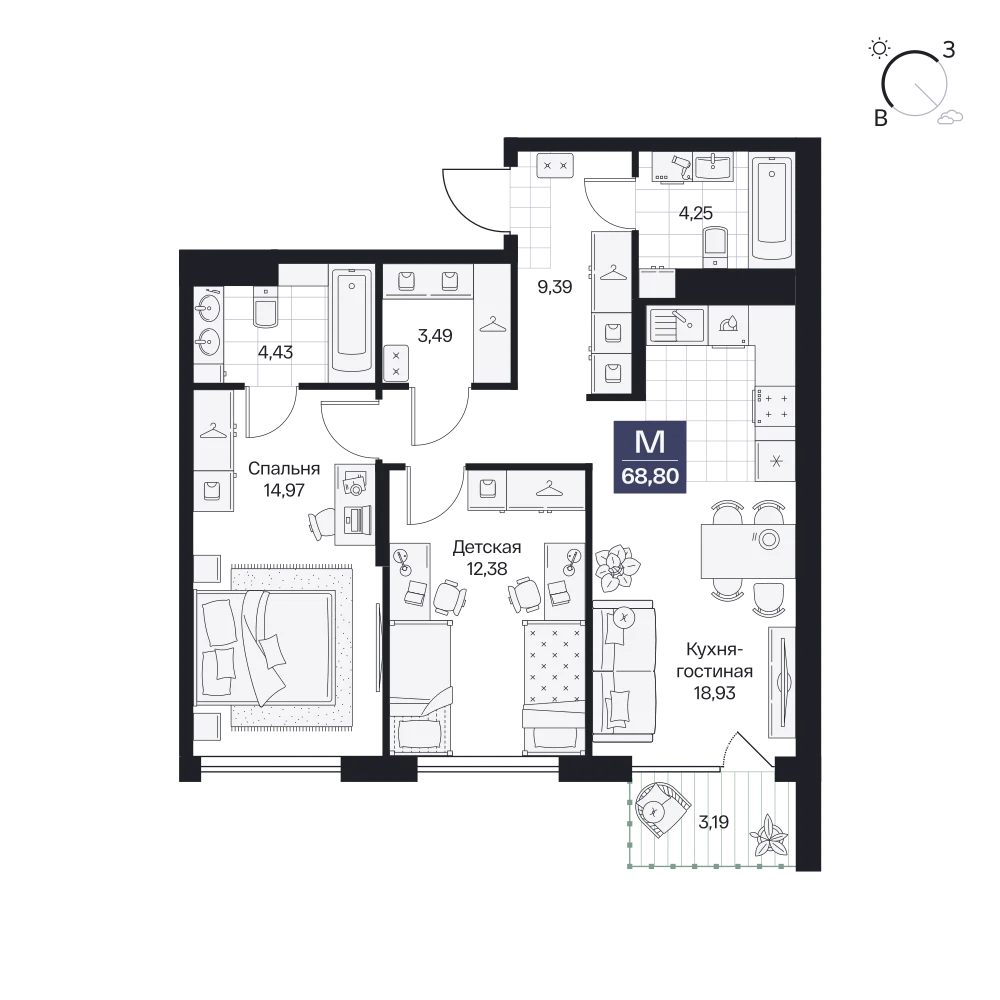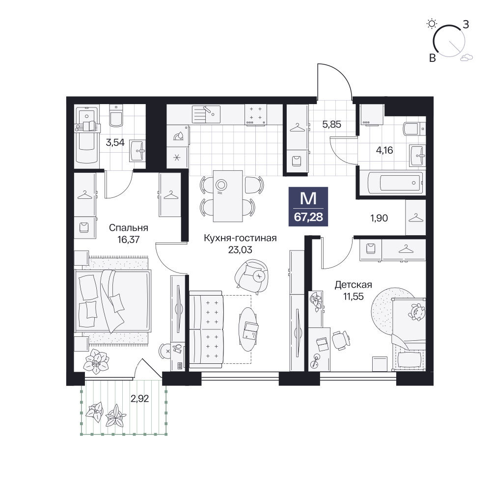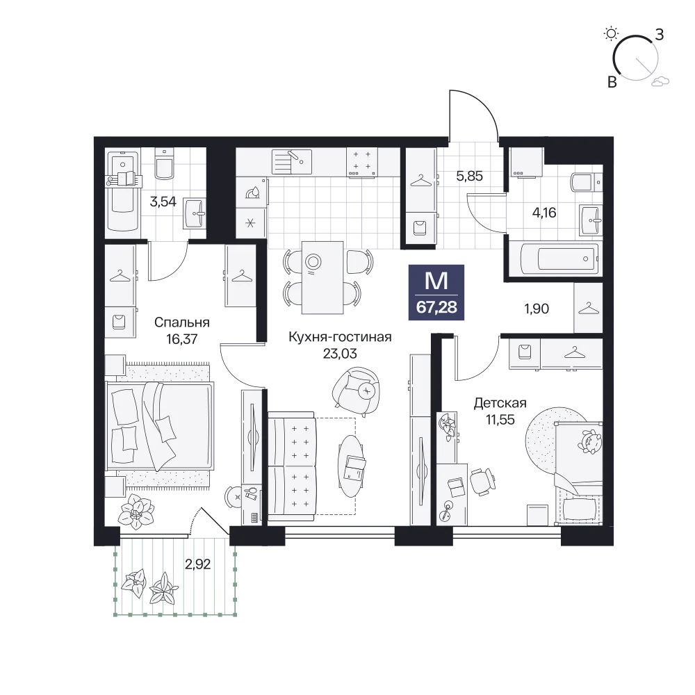 2-комнатная  62.93 м2