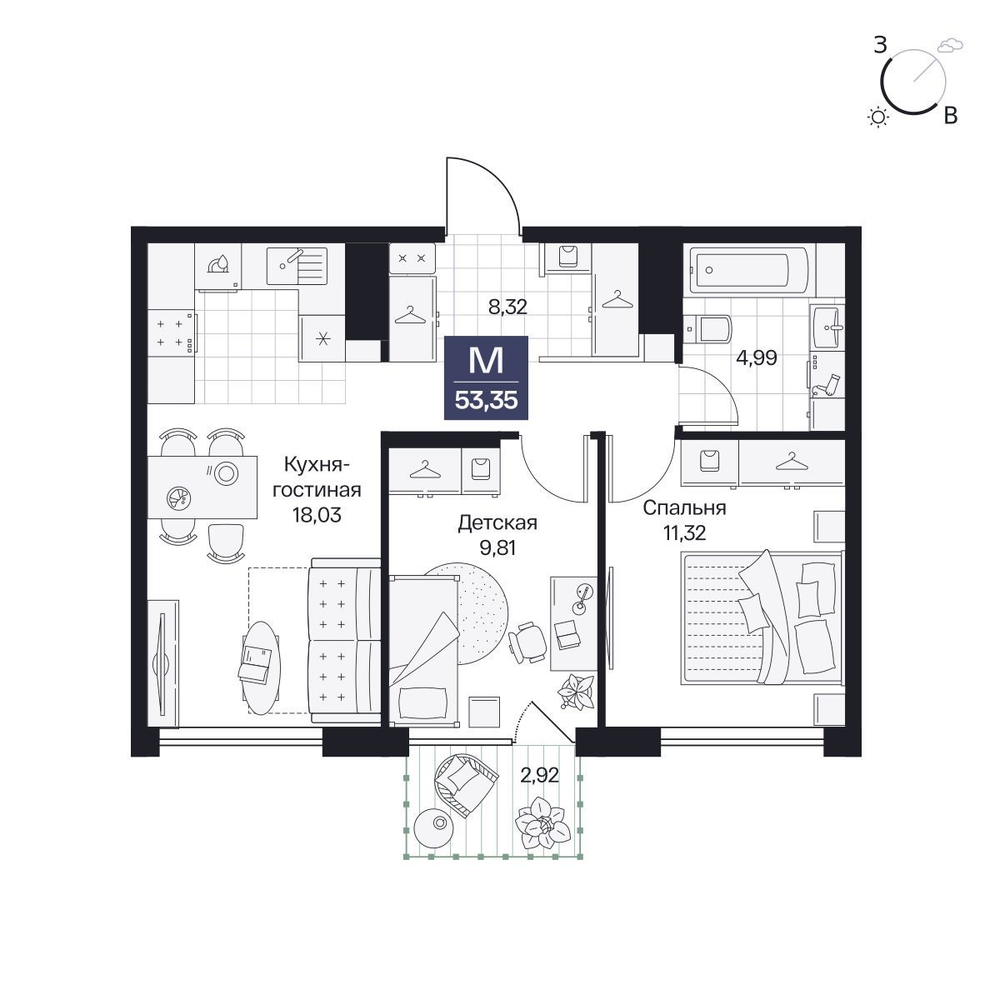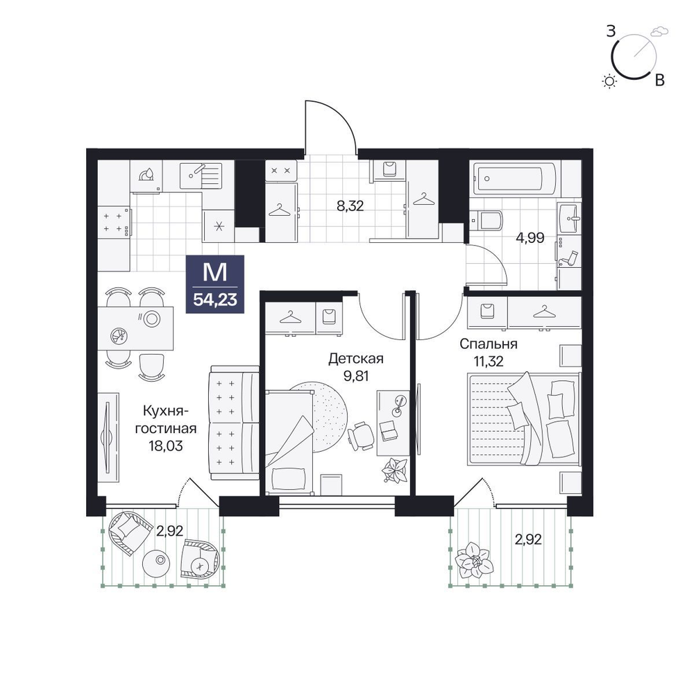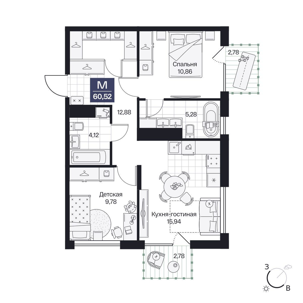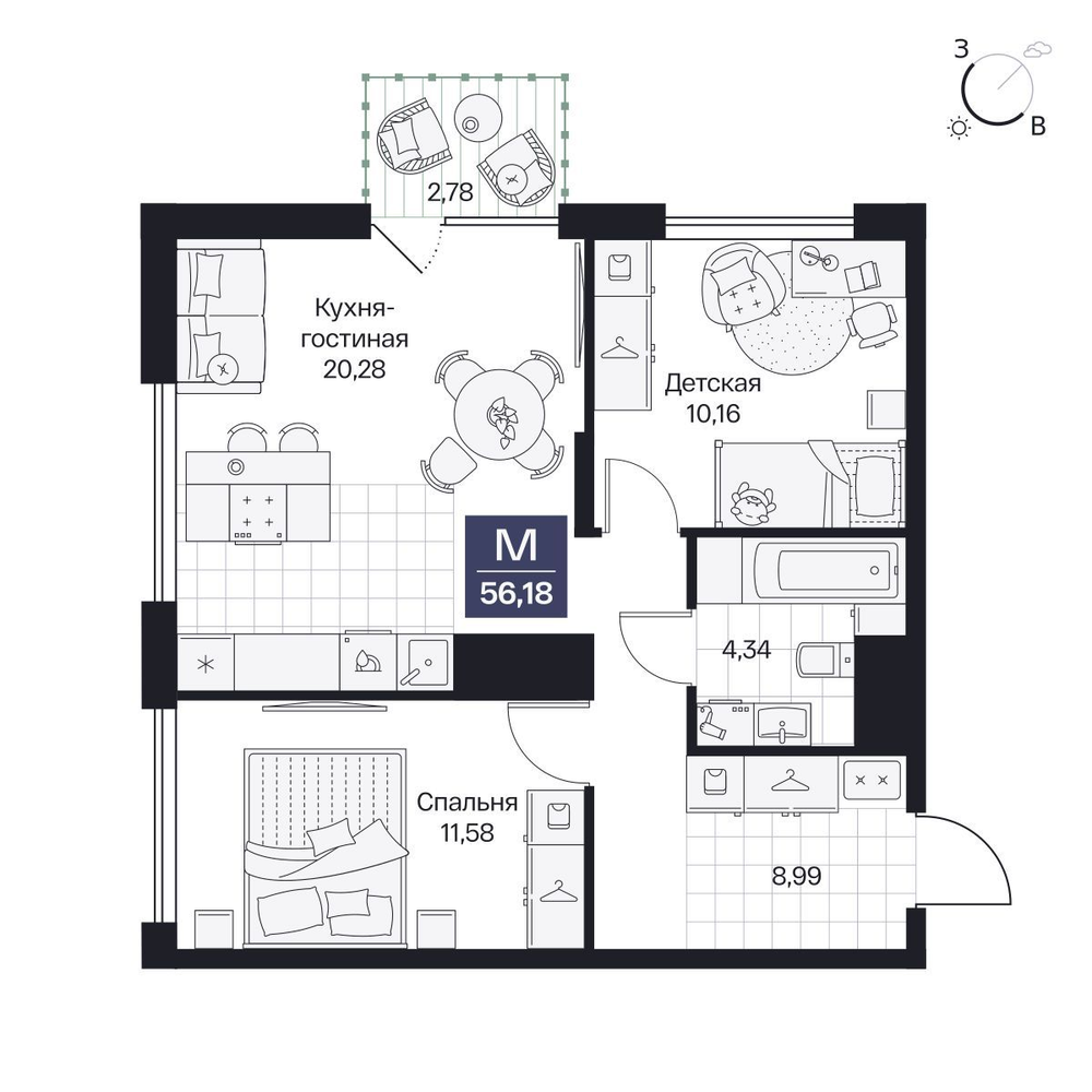 2-комнатная  58.25 м2