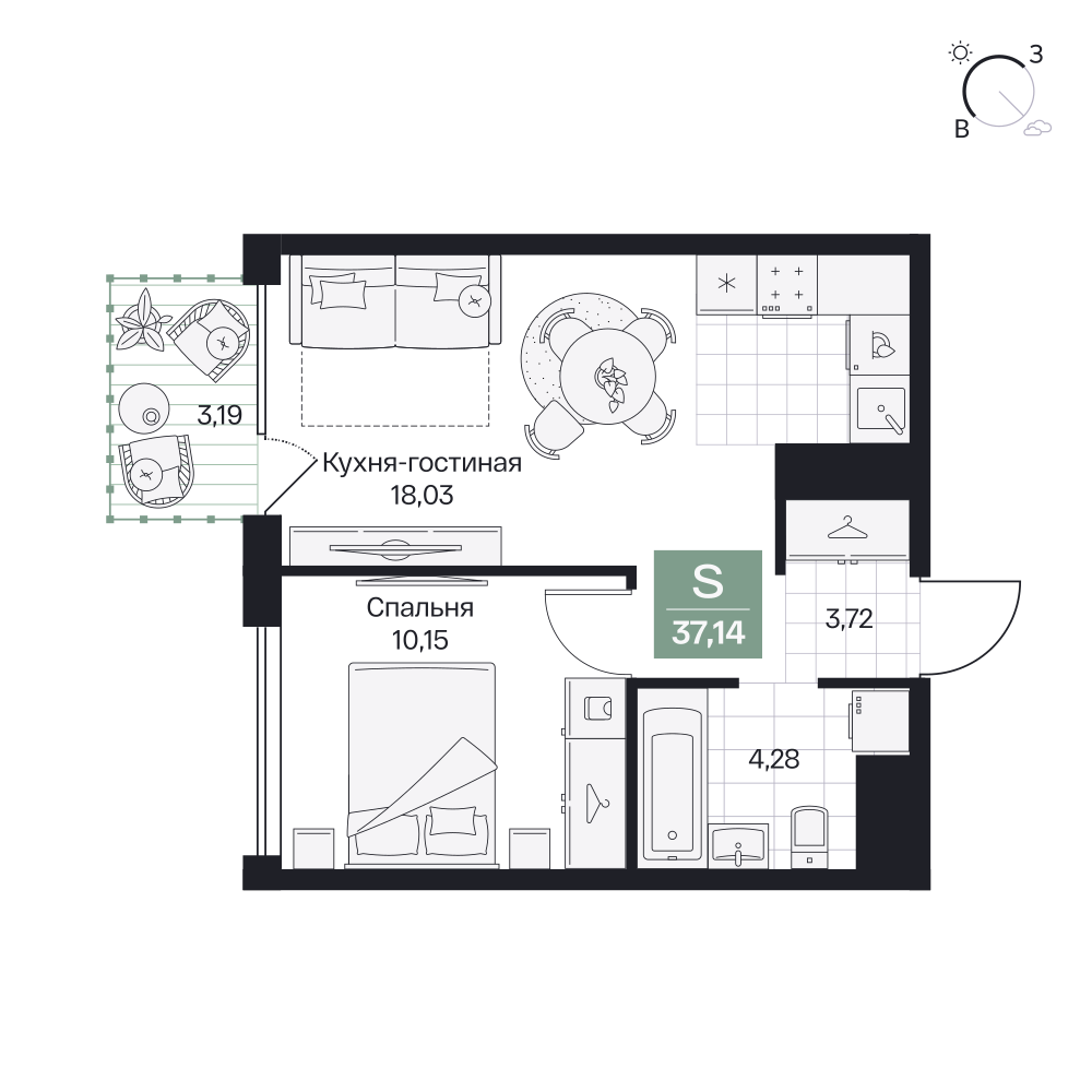 1-комнатная  40.91 м2