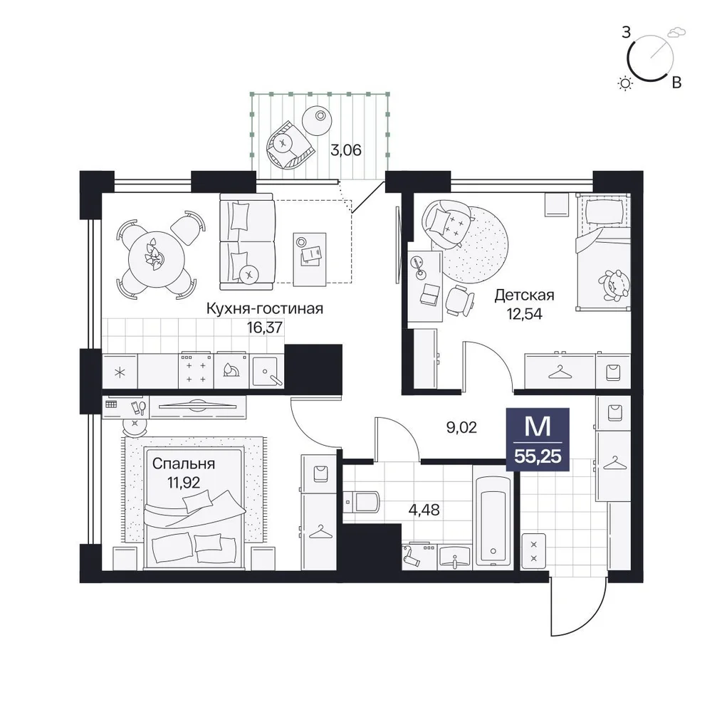 2-комнатная  56.58 м2