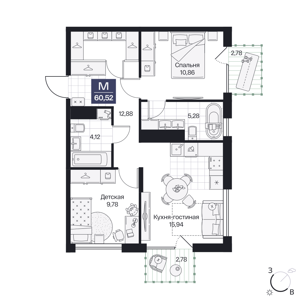 2-комнатная  63.16 м2