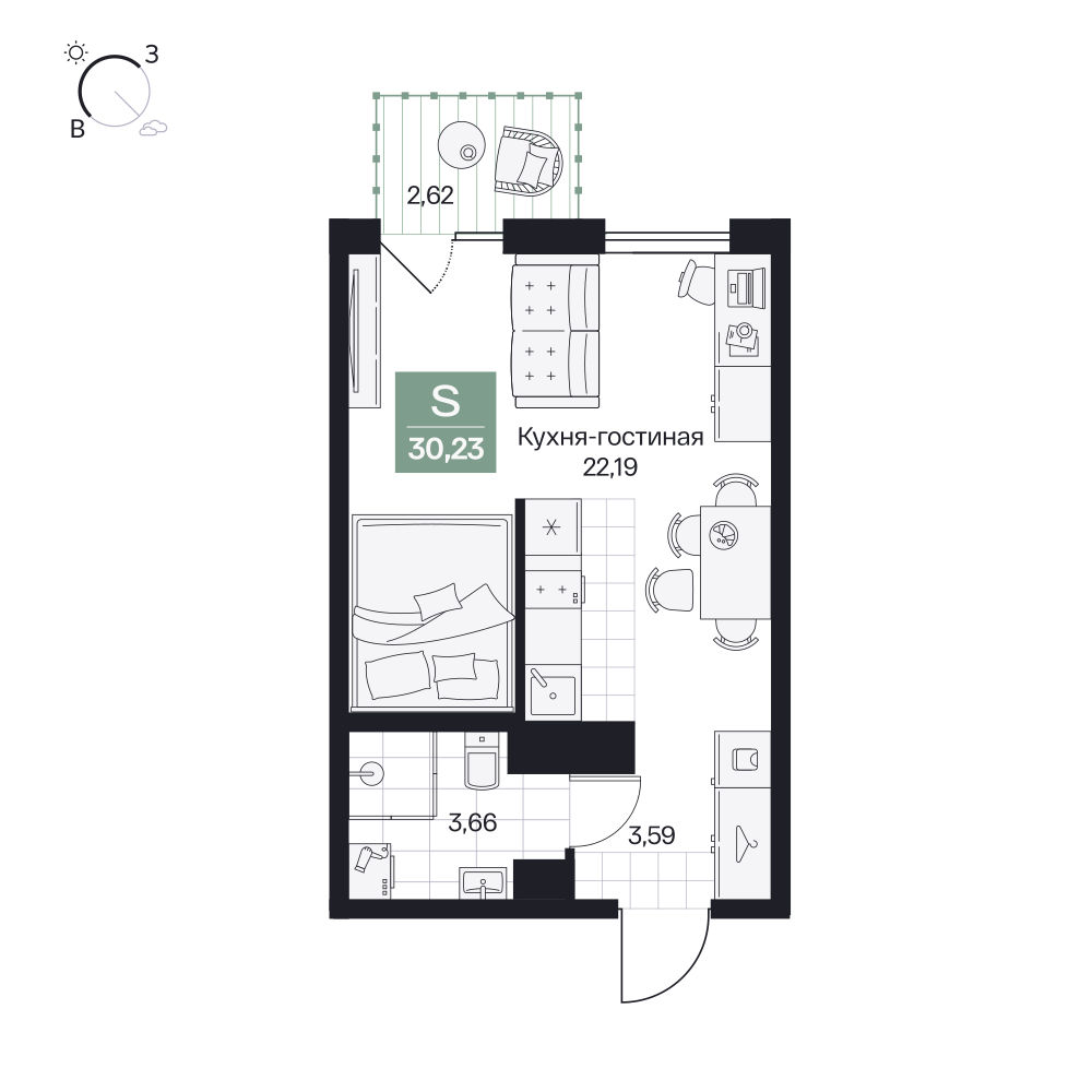 Студия 34.07 м2
