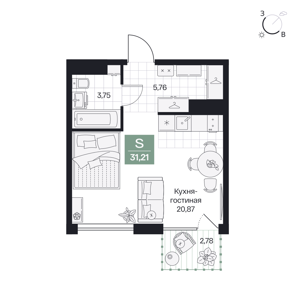 Студия  34.07 м2