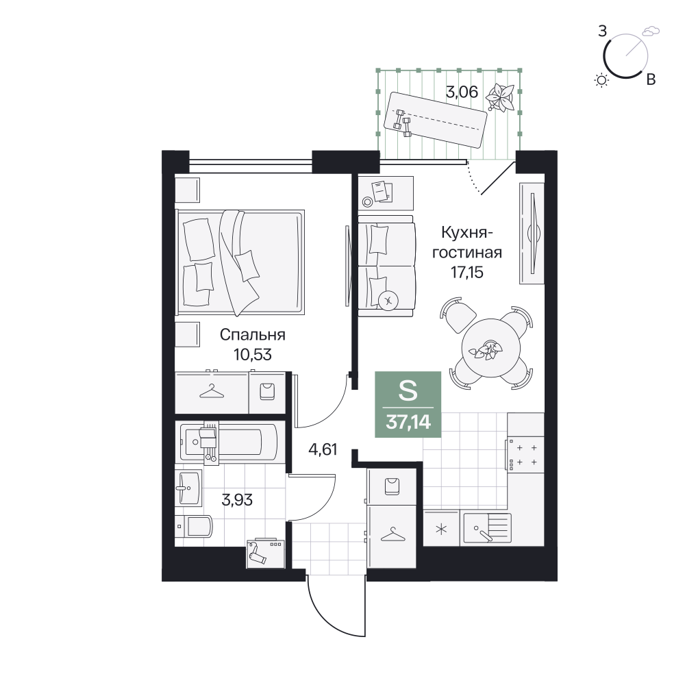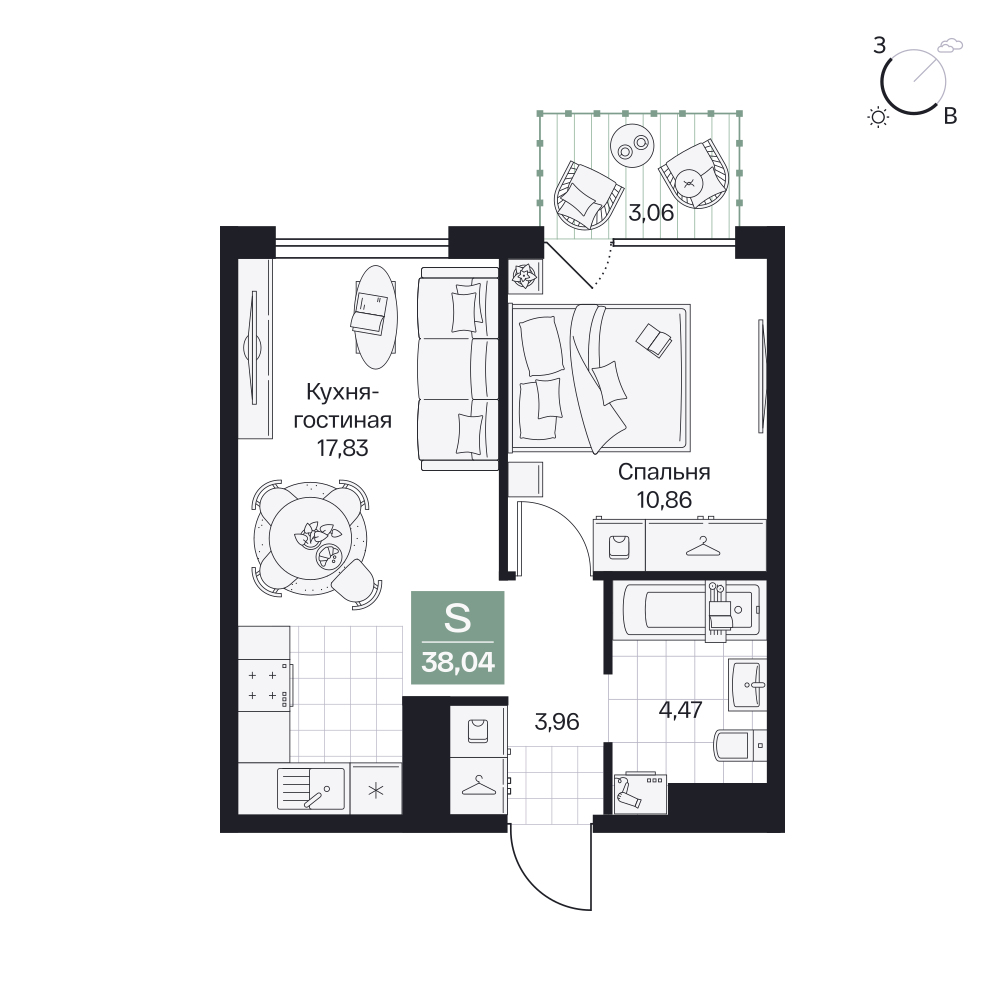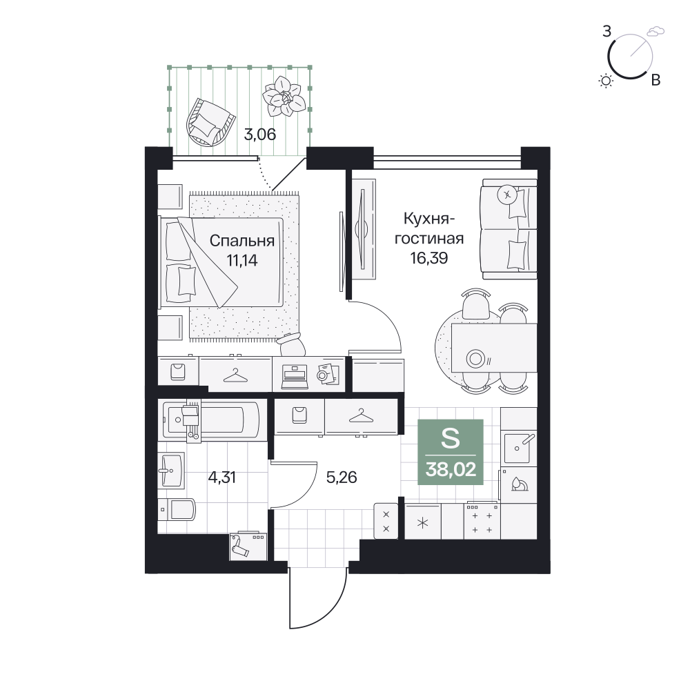 1-комнатная  38.02 м2