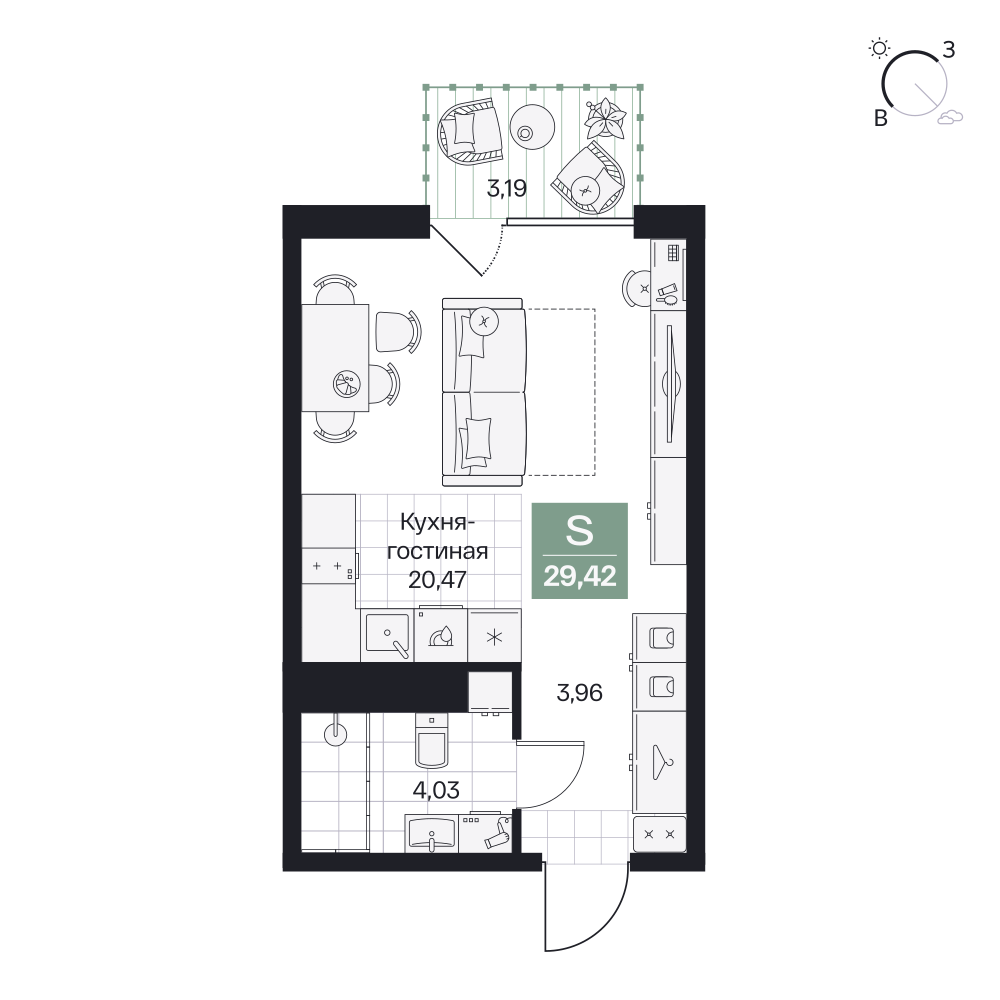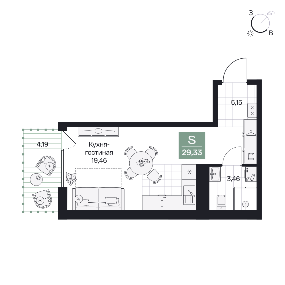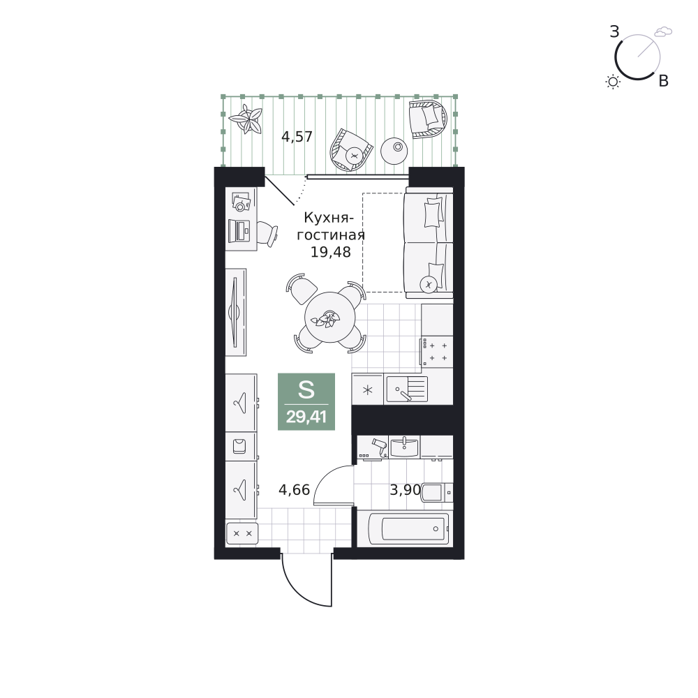 Студия  30.09 м2